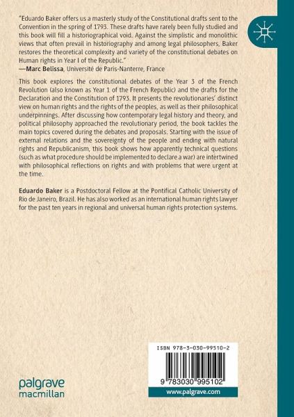 This book explores the constitutional debates of the Year 3 of the French Revolution (also known as Year 1 of the French Republic) and the drafts for the Declaration and the Constitution of 1793. It presents the revolutionaries' distinct view on human rights and the rights of the peoples, as well as their philosophical underpinnings. After discussing how contemporary legal history and theory, and political philosophy approached the revolutionary period, the book tackles the main topics covered during the debates and proposals. Starting with the issue of external relations and the sovereignty of the people and ending with natural rights and Republicanism, this book shows how apparently technical questions (such as what procedure should be implemented to declare a war) are intertwined with philosophical reflections on rights and with problems that were urgent at the time.