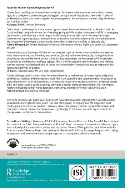 "Human Rights and Justice for All takes on the complex topic of universal human rights and explains what these rights are, and how they are protected (or not) in the world today. By sharing the stories of advocates around the world, author Carrie Walling emphasizes the human part of human rights, in addition to the historical and legal aspects. This is an indispensable text for students and lifelong learners seeking to understand how to utilize the human rights framework to ensure respect for the rights and dignity of all people."