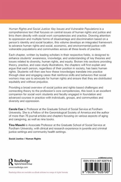 Human Rights and Social Justice: Key Issues and Vulnerable Populations is a comprehensive text that focuses on central issues of human rights and justice and links them directly with social work competencies and practice. Drawing attention to oppression and multiple forms of disadvantage and discrimination based on a person's identity and social location, this volume develops an integrated framework to advance human rights and social, economic, and environmental justice with vulnerable populations and communities across all three levels of practice.