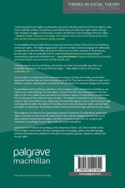 This book examines the contribution social theory can make to understanding different human rights which operate in a variety of settings. Including an introduction to the theoretical issues raised by the study of rights, it covers a range of individual and collective rights, illuminating the relationship between social theory and human rights.