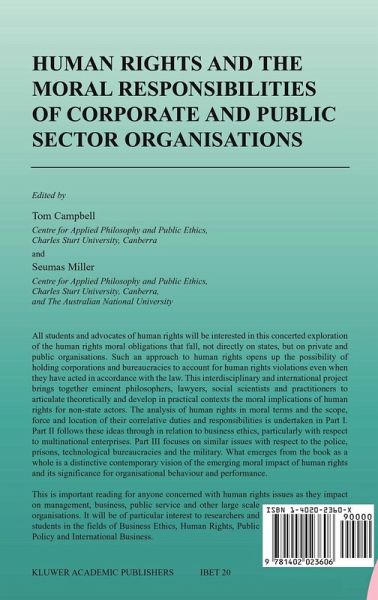 All students and advocates of human rights will be interested in this concerted exploration of the human rights moral obligations that fall, not directly on states, but on private and public organisations. Such an approach to human rights opens up the possibility of holding corporations and bureaucracies to account for human rights violations even when they have acted in accordance with the law. This interdisciplinary and international project brings together eminent philosophers, lawyers, social scientists and practitioners to articulate theoretically and develop in practical contexts the moral implications of human rights for non-state actors. What emerges from the book as a whole is a distinctive contemporary vision of the emerging moral impact of human rights and its significance for organisational behaviour and performance.