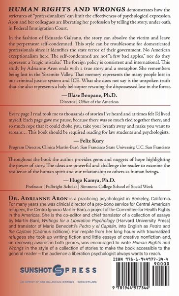 - 2017 SUNSHOT BOOK PRIZE FOR NONFICTION - A gift of truth for a generation of Dreamers, a vault of memories for their parents, and a record of shame, pride, sorrow, humor, and forgotten fact for a nation of immigrants. One comes away from Human Rights and Wrongs knowing more about motivation, fear, risk-taking, and problem solving than when one began. But more than that, one knows more about the conditions of oppression that force people from all over-Central America, the Caribbean, the Middle East, North Africa-to flee their countries, and the conditions of human support and solidarity that help them rebuild shattered lives. Dr. Aron's book is both instructive and uplifting, and a fierce rebuke to anti-immigrant voices booming across our spacious skies.