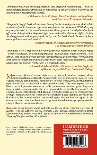 Part I. This-Worldly Norms, Local Not Universal: 1. Human rights: political not theological; 2. Human rights: political not metaphysical; 3. Generating universal human rights out of local norms; Part II. This-Worldly Resources for Human Rights as Social Construction: 4. Cultural resources: individuals as authors of human rights; 5. Neurobiological resources: emotions and natural altruism in support of human rights; Part III. This-Worldly Means of Advancing the Human-Rights Idea: 6. Translating human rights into local cultural vernaculars; 7. Advancing human rights through cognitive re-framing; Part IV. Human Rights, Future Tense: Human Nature and Political Community Reconceived: 8. Human rights via human nature as cultural choice; 9. The human-rights state; Part V. Coda: 10. What is lost, and what gained, by human rights as social construction.