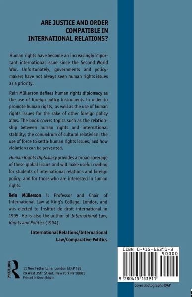 In this insightful analysis of human rights diplomacy Rein Mullerson examines the way foreign policy instruments are used to promote human rights abroad as well as how human rights issues are used for the sake of other foreign policy aims. The book explores the relationship between human rights and international stability, the role of non-governmental organisations, the business community and mass media in formulating human rights agendas for governments and inter-governmental organisations. Also addressed are issues such as the universality of human rights in a multi-cultural world and the impact of religious and nationalistic extremism. Rein Mullerson concludes by looking at the role of the UN and other international bodies engaged in the promotion of human rights and how military force can be an option in settling violations The author argues that it tends to be regimes that are hostile to human rights which in turn cause instability in the international community. Throughout the work it is demonstrated that a concern for human rights is legitimate because of the impact they have on international relations and because of the common bonds that link all people.