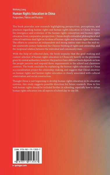 The book provides new research highlighting perspectives, perceptions, and practices regarding human rights and human rights education in China. It traces the emergence and evolution of the human rights conception and human rights education from comparative perspectives. China's deeply embedded philosophical and cultural traditions shed light on its ideas of human rights and human rights education. The efforts to construct an independent and strong nation-state since the mid-to-late nineteenth century fashioned the Chinese thinking of rights and citizenship, and the reciprocal relation between the individual and community/state.