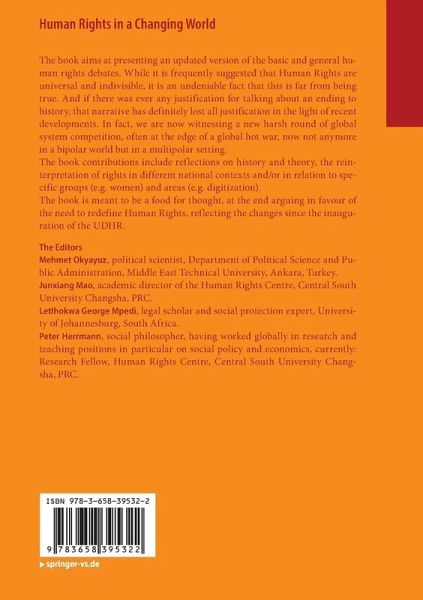 The book aims at presenting an updated version of the basic and general human rights debates. While it is frequently suggested that Human Rights are universal and indivisible, it is an undeniable fact that this is far from being true. And if there was ever any justification for talking about an ending to history, that narrative has definitely lost all justification in the light of recent developments. In fact, we are now witnessing a new harsh round of global system competition, often at the edge of a global hot war, now not anymore in a bipolar world but in a multipolar setting.The book contributions include reflections on history and theory, the reinterpretation of rights in different national contexts and/or in relation to specific groups (e.g. women) and areas (e.g. digitization).The book is meant to be a food for thought, at the end arguing in favour of the need to redefine Human Rights, reflecting the changes since the inauguration of the UDHR.