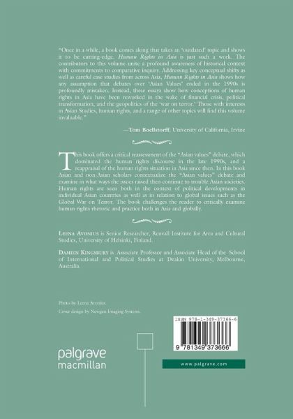 This book offers a critical reassessment of the 'Asian values' debate, which dominated the human rights discourse in the late 1990s, and a reappraisal of the human rights situation in Asia since then. The chapters in this book contextualize the debate and examine in what ways the issues raised then continue to trouble Asian societies.
