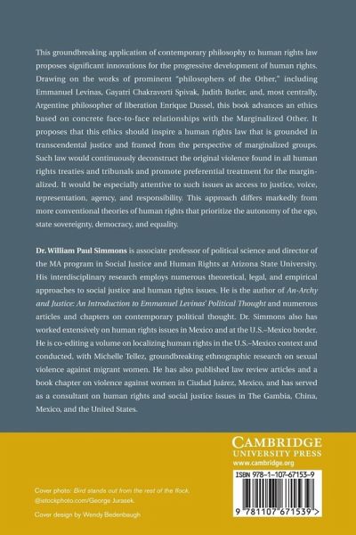 This is a groundbreaking application of contemporary philosophy to human rights law that proposes significant innovations for the progressive development of human rights. Drawing on the works of prominent 'philosophers of the Other' including Emmanuel Levinas, Gayatri Chakravorti Spivak, Judith Butler and, most centrally, the Argentine philosopher of liberation Enrique Dussel, this book develops an ethics based on concrete face-to-face relationships with the Marginalized Other. It proposes that this should inspire a human rights law that is grounded in transcendental justice and framed from the perspective of marginalized groups. This would continuously deconstruct the original violence found in all human rights treaties and tribunals and promote preferential treatment for the marginalized. It would be especially attentive to such issues as access to justice, voice, representation, agency and responsibility. This differs markedly from more conventional theories that prioritize the autonomy of the ego, state sovereignty, democracy and/or equality.