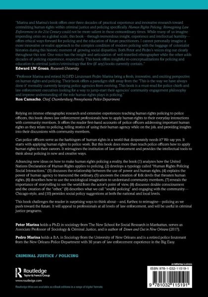 "Professor Marina and retired N.O.P.D. Lieutenant Pedro Marina bring a fresh, innovative, and exciting perspective on human rights and policing. Their book offers a paradigm shift away from the 'This is the way we have always done it,' mentality currently keeping police agencies from evolving. This book is a must-read for police chiefs and law enforcement executives looking for a way to jump-start their agencies' community engagement philosophy and improve understanding of the role human rights plays in policing."