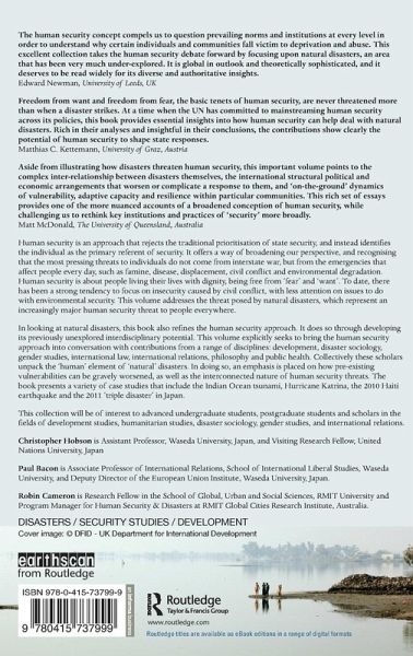 This book develops human security not only through extending it to natural disasters, but also by demonstrating how it can be developed by adopting an interdisciplinary approach. To date, the interdisciplinary dimension of human security has not received sufficient attention. The book demonstrates the value of drawing on a wide range of voices and examines the vulnerability of social groups and communities in the event of a disaster, and how they collectively empower themselves to prevent, respond to and recover from disasters.