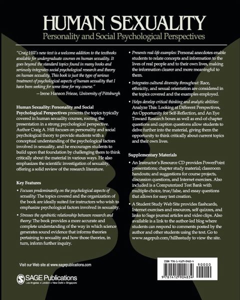Written to promote the development of students' critical thinking and analytical abilities through the analysis of theory and evidence concerning sexuality, this book covers topics typically covered in human sexuality courses (anatomy, physiology, gender, love and relationships, development, reproductive issues, disorders) but from a psychological perspective.