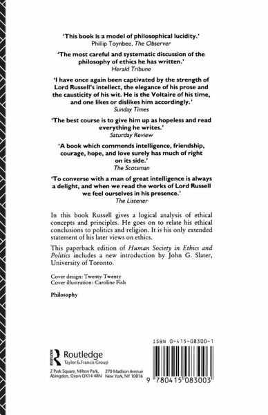In this book Russell gives a logical analysis of ethical concepts and principles. He goes on to relate his ethical conclusions to politics and religion. It is his only extended statement of his later views on ethics.