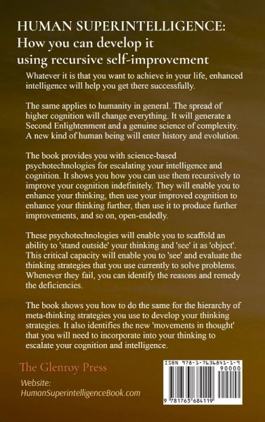 Whatever your goals, enhanced cognition will help you achieve them.It will enable you to develop better strategies for getting what you want. The same applies to humanity in general. The spread of higher cognition will change everything.It will generate a Second Enlightenment and a genuine science of complexity. A new kind of human will enter history and evolution. This book provides science-based psychotechnologies that you can use to escalate your intelligence and cognition. It shows how to use them recursively to improve your cognition indefinitely.The psychotechnologies will enable you to enhance your thinking, then use your improved cognition to enhance your thinking further, then use it to produce further improvements, and so on, open-endedly. These psychotechnologies will enable you to scaffold an ability to 'stand outside' your thinking and 'see' it as 'object'.This will enable you to 'see' and evaluate the thinking strategies that you now use. Whenever they fail, you can identify the reasons and remedy the deficiencies. The book shows you how to do the same for the hierarchy of meta-thinking strategies you use to develop your thinking strategies. The capacity to 'stand outside' your thoughts and feelings is invaluable for escaping and remedying maladaptive thinking.The book shows how it can also be used to escape maladaptive emotional responses and conditioning. The psychotechnologies also include methods to scaffold metasystemic cognition - a capacity to build mental models of complex phenomena.This higher cognition will give you the ability to comprehend and manipulate complex circumstances. The book identifies the new 'movements in thought' that you will need to incorporate into your thinking to develop metasystemic cognition. The spread of metasystemic cognition is essential if human civilization is to survive the complex existential threats we face. These challenges cannot be solved by the cognition that underpins mainstream science and spread during the First Enlightenment.This cognition is largely limited to developing mechanistic, reductionist models. They are too simple to model complex phenomena and produce a genuine science of complexity. The book demonstrates how higher cognition will enable humanity to comprehend for the first time the larger-scale evolutionary processes that have shaped humanity and will determine our future.Significantly, it will enable you to see that evolution has a trajectory that includes a critical role for humanity, individually as well as collectively. Fulfilling your evolutionary role has the potential to provide a life that is meaningful and purposeful in a much larger scheme of things.