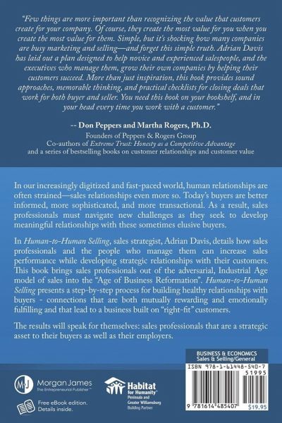 In our increasingly digitized and fast-paced world, human relationships are often strained-sales relationships even more so. Sales professionals must navigate new challenges as they seek to develop meaningful relationships with buyers who are often elusive. Human To Human Selling will appeal to sales professionals and the people who manage them by showing how they can increase sales performance while simultaneously developing strategic relationships with their customers.