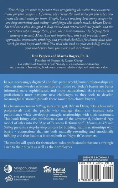 In our increasingly digitized and fast-paced world, human relationships are often strained-sales relationships even more so. Sales professionals must navigate new challenges as they seek to develop meaningful relationships with buyers who are often elusive. Human To Human Selling will appeal to sales professionals and the people who manage them by showing how they can increase sales performance while simultaneously developing strategic relationships with their customers.