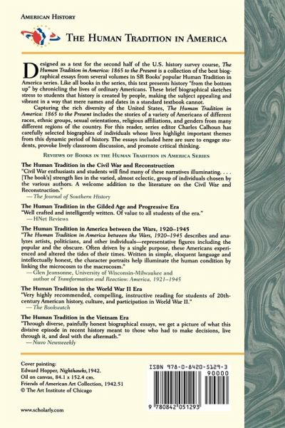 Designed as a text for the second half of the U.S. history survey course, The Human Tradition in America from 1865 to the Present is a collection of the best biographical essays from several volumes in SR Books' popular Human Tradition in America series. Like all books in the series, this text presents history from the "bottom up" by chronicling the lives of ordinary Americans. These brief biographical sketches stress to students that history is created by people, making the subject appealing and vibrant in a way that just names and dates in a standard textbook cannot. Capturing the rich diversity of the United States, The Human Tradition in America from 1865 to the Present includes the stories of a variety of Americans of different races, ethnic groups, sexual orientations, religious affiliations, and genders from many different regions of the country. For this reader, series editor Charles Calhoun has carefully selected biographies of individuals whose lives highlight important themes from this dynamic period of history. The essays included here are sure to engage students, provoke lively classroom discussion, and promote critical thinking.
