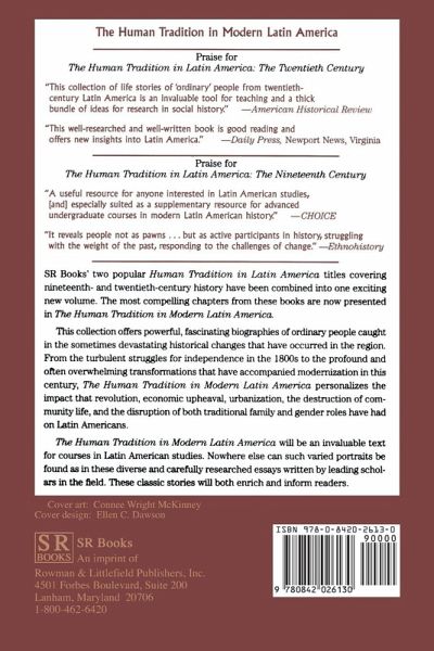 SR Books' two popular Human Tradition in Latin America titles covering nineteenth- and twentieth-century history have been combined into one exciting new volume. The most compelling chapters from these books are now presented in The Human Tradition in Modern Latin America. This collection offers powerful, fascinating biographies of ordinary people caught in the sometimes devastating historical changes that have occurred in Latin America. From the turbulent struggles for independence in the 1800s to the profound and often overwhelming transformations that have accompanied modernization in this century, The Human Tradition in Modern Latin America personalizes the impact that revolution, economic upheaval, urbanization, the destruction of community life, and the disruption of both traditional family and gender roles have had on Latin Americans.The Human Tradition in Modern Latin America is an invaluable text for courses in Latin American studies. Nowhere else can such varied portraits be found as in these diverse and carefully researched essays written by leading scholars.