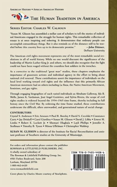 The American civil rights movement represents one of the most remarkable social revolutions in all of world history. While no one would discount the significance of the leadership of Martin Luther King and others, we should also recognize that the fight could not have been waged without the countless foot soldiers in the trenches. As an important corrective to the traditional "great man" studies, these essays emphasize the importance of grassroots actions and individual agency in the effort to bring about national civil renewal. These biographies assert the importance of individuals on the local level working towards civil rights and the influence that this primarily African-American movement had on others including La Raza, the Native American Movement, feminism, and gay rights. Through engaging biographies of such varied individuals as Abraham Galloway, Ida B. Wells, James K. Vardaman, Jose Angel Gutierrez, and Sylvia Rivera, Glisson widens the scope of most Civil Rights studies beyond the 1954-1965 time frame to include its full history since the Civil War. By widening the time frame studied, these essays underscore the difficult, often unrewarded and generational nature of social change.
