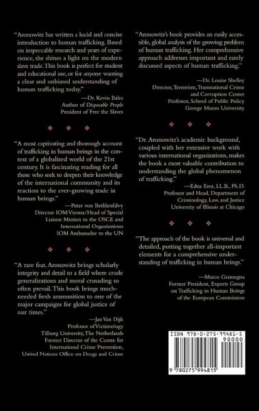 Virtually all countries in the world are affected by the scourge of human trafficking, either as a source, transit, or destination country, or combination thereof. While countries have long focused on international trafficking, internal movement and exploitation within countries may be even more prevalent than trans-border trafficking. Patterns of trafficking vary across countries and regions and are in a constant state of flux. Countries have long focused on trafficking solely for the purpose of sexual exploitation, yet exploitation in agriculture, construction, fishing, manufacturing, and the domestic and food service industries are prevalent in many countries. Here, Aronowitz takes a global perspective in examining the nefarious underworld of human trafficking, revealing the nature and extent of the harm caused by this hideous criminal practice. Virtually all countries in the world are affected by the scourge of human trafficking, either as a source, transit, or destination country, or combination thereof. While countries have long focused on international trafficking, internal movement and exploitation within countries may be even more prevalent than trans-border trafficking. Patterns of trafficking vary across countries and regions and are in a constant state of flux. Countries have long focused on trafficking solely for the purpose of sexual exploitation, yet exploitation in agriculture, construction, fishing, manufacturing, and the domestic and food service industries are prevalent in many countries. Here, Aronowitz takes a global perspective in examining the nefarious underworld of human trafficking, revealing the nature and extent of the harm caused by this hideous criminal practice. Taking a victims-oriented approach, this book examines the criminals and criminal organizations that traffic and exploit their victims. The author also focuses on the different groups of victims as well as the various forms of and markets for trafficking, many of which have been overlooked due to an emphasis on sex trafficking. She also explores less frequently discussed forms of trafficking - in organs, child soldiers, mail-order brides, and adoption, as well as the use of Internet in trafficking. Drawing on her own field experiences in various parts of the world, the author offers real-life context throughout the book through descriptions of a number of cases with which she was involved or learned about in her travels. Together with insightful analysis, these stories uncover the true nature of human trafficking and illustrate the extent of its reach and harm.
