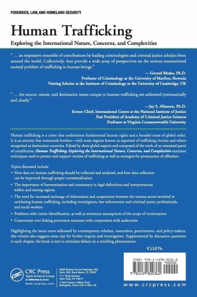 Human trafficking is a crime that undermines fundamental human rights and a broader sense of global order. It is an atrocity that transcends borders-with some regions known as exporters of trafficking victims and others recognized as destination countries. Edited by three global experts and composed of the work of an esteemed panel of contributors, Human Trafficking: Exploring the International Nature, Concerns, and Complexities examines techniques used to protect and support victims of trafficking as well as strategies for prosecution of offenders. Topics discussed include: How data on human trafficking should be collected and analyzed, and how data collection can be improved through proper contextualization The importance of harmonization and consistency in legal definitions and interpretations within and among regions The need for increased exchange of information and cooperation between the various actors involved in combating human trafficking, including investigators, law enforcement and criminal justice professionals, and social workers Problems with victim identification, as well as erroneous assumptions of the scope of victimization Controversy over linking protection measures with cooperation with authorities Highlighting the issues most addressed by contemporary scholars, researchers, practitioners, and policy-makers, this volume also suggests areas ripe for further inquiry and investigation. Supplemented by discussion questions in each chapter, the book is sure to stimulate debate on a troubling phenomenon. ¿