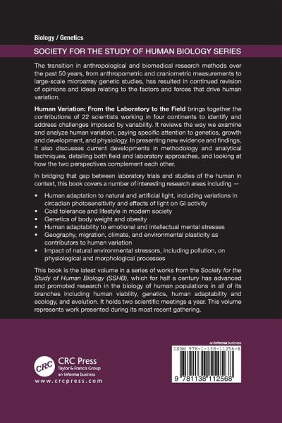 Factors and Forces Influencing Human Variation. Genetics of Body Weight and Obesity. Diversity of Human Adaptability to Environments: A Physiological Anthropology Perspective. Tissue and Cell Adaptability to Physical and Chemical Factors. Human Adaptation to Natural and Artificial Light: Variation in Circadian Photosensitivity. Effect of Environmental Light on Human Gastrointestinal Activity: From Laboratory Study to Fieldwork. Cold Tolerance and Lifestyle in Modern Society. Human Adaptability to Emotional and Intellectual Mental Stresses. Impact of Pollution on Physiological Systems: Taking Science from the Laboratory to the Field.Bridging the Gap between Laboratory Trials and the Reality of the Human in Context. Geography, Migration, Climate, and Environmental Plasticity as Contributors to Human Variation. From a History of Anthropometry to Anthropometric History. Growth and Maturation: Interactions and Sources of Variation. Bone Health and Body Composition Measurement in Older People: Challenges Imposed by Variability. Research Designs and Statistical Methods in Both Laboratory and Field Settings. Impact of Natural Environmental Stressors on Physiological and Morphological Processes: Methodological Approaches in the Field and Laboratory.