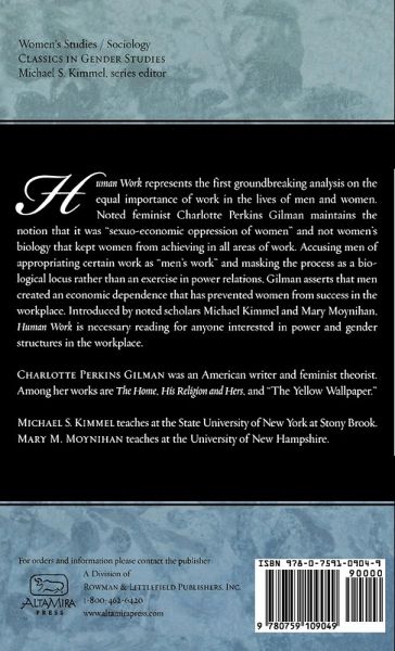 Human Work represents the first ground breaking analysis by noted feminist Charlotte Perkins Gilman on the equal importance of work in the lives of men and women. Gilman asserts that men created an economic dependence that has prevented women from success in the workplace. Introduced by noted scholars Michael Kimmel and Mary Moynihan, this is necessary reading for anyone interested in power and gender structures in the workplace.