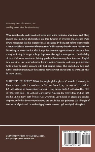 What is said can be understood only when seen in the context of what is not said. Many ancient and medieval philosophers use this dynamic of presence and absence. Gray shows how each author amplifies meaning in the distance between what he puts into his work and what he leaves unsaid.