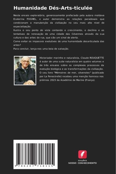 Neste ensaio exploratório, generosamente prefaciado pela autora moldava Ecaterina FOGHEL, o autor demonstra as relações paradoxais que condicionam a manutenção da civilização no seu mais alto nível de especialização.Ilustra o seu ponto de vista contando o crescimento, o declínio e as tentativas de renovação de uma cidade das Cévennes através da sua cultura e das artes de rua, que são um sinal de alerta.Como evitar os impasses evolutivos de uma humanidade desarticulada das artes?Para concluir, lança-nos uma boia de salvação.