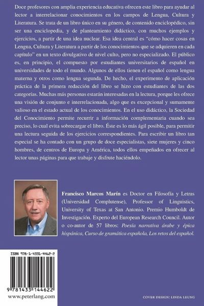 Doce profesores con amplia experiencia educativa ofrecen este libro para ayudar al lector a interrelacionar conocimientos en los campos de Lengua, Cultura y Literatura. Se trata de un libro único en su género, de contenido enciclopédico, sin ser una enciclopedia, y de planteamiento didáctico, con muchos ejemplos y ejercicios, a partir de una idea nuclear. Esa idea central es "cómo hacer cosas en Lengua, Cultura y Literatura a partir de los conocimientos que se adquieren en cada capítulo" en un texto divulgativo de nivel culto, pero no especializado. El público es, en principio, el compuesto por estudiantes universitarios de español en universidades de todo el mundo. Algunos de ellos tienen el español como lengua materna y otros como lengua segunda. De hecho, el experimento de aplicación práctica de la primera redacción del libro se hizo con estudiantes de las dos categorías. Muchas más personas estarán interesadas en la lectura, porque les ofrece una visión de conjunto e interrelacionada, algo que es excepcional y sumamente valioso en el estado actual de los conocimientos. En el uso didáctico, la Sociedad del Conocimiento permite recurrir a información complementaria cuando sea preciso, lo cual evita sobrecargar el libro. Éste es lo más ágil posible, para permitir una lectura seguida de los ejercicios correspondientes. Para escribir un libro tan especial se ha contado con un grupo de doce especialistas, siete mujeres y cinco hombres, de centros de Europa y América, todos ellos empeñados en ofrecer al lector unas páginas para que trabaje y disfrute haciéndolo.