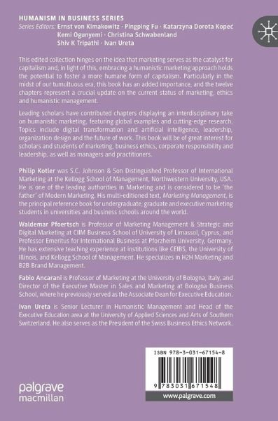 Leading scholars have contributed chapters displaying an interdisciplinary take on humanistic marketing, featuring global examples and cutting-edge research. Topics include digital transformation and artificial intelligence, leadership, organization design and the future of work. This book will be of great interest for scholars and students of marketing, business ethics, corporate responsibility and leadership.