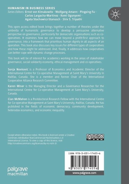 Introduction.- Part 1.- Humanism and the cooperative enterprise - theoretical foundations.- Parsing dignity for organizations.- Cooperative governance in context.- Part 2.- Humanism and democracy in worker cooperatives.- Democratic cooperative governance: understanding the roles of the governing bodies.- Governance in Lincolnshire Consumer Cooperative.- Comparing governance systems in Cuban cooperatives: a study of producer and worker cooperatives in agriculture, industry and services.- From theory to practice: social capital in agricultural cooperatives in Flanders, Belgium.- The governance of multistakeholder cooperatives in Mondragon: The evolving relationship among purpose, structure, and process.- Networking, governance, and stakeholder engagement of financial cooperatives: some national case studies.- Part 3.- Decades of radical self-management at a Venezuelan cooperative: Institutional distinctiveness and ideology.- Transformational resilience and future-ready cooperative governance systems.- Measuring transformational impact of cooperatives.