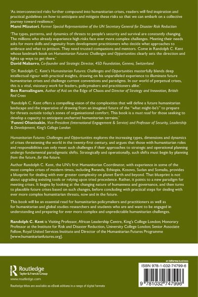 Author Randolph C. Kent, the UN's first Humanitarian Coordinator, with experience in some of the most complex crises of modern times, including Rwanda, Ethiopia, Kosovo, Sudan and Somalia, provides a blueprint for dealing with ever greater complexity on planet Earth and beyond. That blueprint is not about upgrading existing tools or relying upon tried precedence. Rather, it points to a new paradigm for meeting crises. It begins by looking at the changing nature of humanness and governance, and then turns to plausible future crises based on such changes, before concluding with practical steps for dealing with ever more complex humanitarian threats, now and in the future.