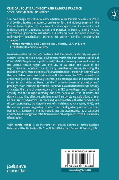 Humanitarianism and Security contends that the search for stability and peace remains central to the political environment within the Democratic Republic of Congo (DRC). Despite some positive political and economic progress observed in the Central African Region and the DRC in particular, the future of the region remains uncertain. Due to many unaddressed issues, including the multidimensional manifestations of humanitarian crises, the region is fragile with the potential for a relapse into violent conflict. Moreover, the DRC's humanitarian crises have yet to be effectively addressed as consequences and promoters of insecurity and violence. Based on the "humanitarian-security-development" paradigm as an inclusive operational framework, Humanitarianism and Security articulates the trend of peace recovery in the DRC as contingent upon issues of security and the refugee/internally displaced population crisis. It claims and demonstrates that effective solutions must incorporate considerations of pre-colonial security dynamics, the place and role of identity within the humanitarian discourse/strategies, the determinants of transitional public security (TPS), and the various dynamics regarding the return and re/integration processes, into one operational framework. This framework must be accompanied by a continued effort to build strong local institutions as a critical component to the sustainability of operations.