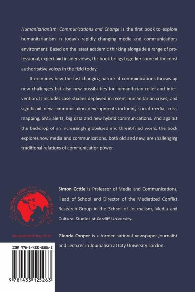 Contents: Simon Cottle/Glenda Cooper: Humanitarianism, Communications, and Change - Simon Cottle: Humanitarianism, Human Insecurity, and Communications: What's Changing in a Globalised World? - Randolph Kent: Media Futures and Humanitarian Perspectives in an Age of Uncertainty and Complexity - Richard Sambrook: From Buerk to Ushahidi: Changes in TV Reporting of Humanitarian Crises - Paul Conneally: Digital Humanitarianism - Cash, Charity, and Communication - Glenda Cooper: «Give us your ****ing money»: A Critical Appraisal of TV and the Cash Nexus - Paddy Coulter/Glenda Cooper: NGOs, Media, and Public Understanding 25 Years On: An Interview with Paddy Coulter, Former Head of Media, Oxfam - Liz Scarff: 3,000 Words that Explain How to Build a Powerful Fanbase, Make Your Message Go Viral, and Raise Millions for Your Cause - Nandita Dogra: International NGOs, Global Poverty, and the Representations of Children - Shani Orgad: Underline, Celebrate, Mitigate, Erase: Humanitarian NGOs' Strategies of Communicating Difference - Lilie Chouliaraki: Solidarity in the Age of Post-humanitarianism - Suzanne Franks: From Pictures to Policy: How Does Humanitarian Reporting Have an Influence? - Irene Bruna Seu: Learning from the Public: UK Audiences' Responses to Humanitarian Communications - Kimberly Abbott: NGO Communications in the New Media Ecology: How NGOs Became the «New(s) Reporters» - Stuart Allan: Visualizing Human Rights: The Video Advocacy of WITNESS - Patrick Meier: Big Data and Humanitarian Response - Alice Klein: «Power in my Pocket»: How Mobile Citizen Reporting Challenges Digital Elitism - Claire Wardle: New Approaches to Aggregation and Verification in Humanitarian Newsgathering and Coverage - Imogen Wall/Kyla Reid: Mobile Emergencies, Mobile Phones: The Hidden Revolution - Glenda Cooper/Simon Cottle: Humanitarianism, Communications, and Change: Final Reflections.