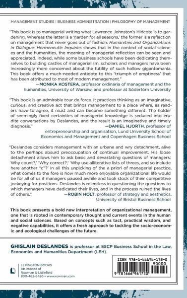Administrative practice and science are currently undergoing a profound reassessment. The terms "stress", "burn-out", or "meaningless jobs" give us an idea of the reasons why the commitment to work is at half-mast today, which is rather worrying for the economic development itself. Faced with the added complexity of various technological, environmental, and geopolitical disruptions, managers are ultimately called upon to completely reinvent the way they work and think. In an attempt to transform our conception of management, the method proposed in Humanities and Organizations in Dialogue: Hermeneutic Inquiries is based on the study of contemporary humanities. Consequently, Ghislain Deslandes comments on numerous essays to provide managers with a unique way of understanding what is happening. The approach reintroduces a measure of philosophical reflexivity into a world where it is all too often absent, in order to understand business administration with new perspectives and new tools, especially in terms of language. It also seeks to better understand how managers should respond, with subtlety and tact, to the socio-economic and environmental challenges facing organizations.