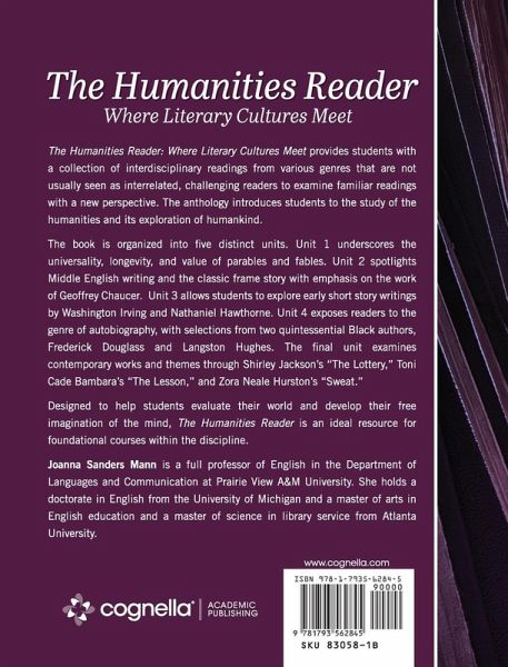 The Humanities Reader: Where Literary Cultures Meet provides students with a collection of interdisciplinary readings from various genres that are not usually seen as interrelated, challenging readers to examine familiar readings with a new perspective. The anthology introduces students to the study of the humanities and its exploration of humankind. The book is organized into five distinct units. Unit 1 underscores the universality, longevity, and value of parables and fables. Unit 2 spotlights Middle English writing and the classic frame story with emphasis on the work of Geoffrey Chaucer. Unit 3 allows students to explore early short story writings by Washington Irving and Nathaniel Hawthorne. Unit 4 exposes readers to the genre of autobiography, with selections from two quintessential Black authors, Frederick Douglass and Langston Hughes. The final unit examines contemporary works and themes through Shirley Jackson's "The Lottery," Toni Cade Bambara's "The Lesson," and Zora Neale Hurston's "Sweat." Designed to help students evaluate their world and develop their free imagination of the mind, The Humanities Reader is an ideal resource for foundational courses within the discipline.