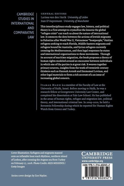 This interdisciplinary study engages law, history, and political theory in a first attempt to crystallize the lessons the global 'refugee crisis' can teach us about the nature of international law. It connects the dots between the actions of Jewish migrants to Palestine after WWII, Vietnamese 'boatpeople', Haitian refugees seeking to reach Florida, Middle Eastern migrants and refugees bound to Australia, and Syrian refugees currently crossing the Mediterranean, and then legal responses by states and international organizations to these movements. Through its account of maritime migration, the book proposes a theory of human rights modelled around an encounter between individuals in which one of the parties is at great risk. It weaves together primary sources, insights from the work of twentieth-century thinkers such as Hannah Arendt and Emmanuel Levinas, and other legal materials to form a rich account of an issue of increasing global concern.