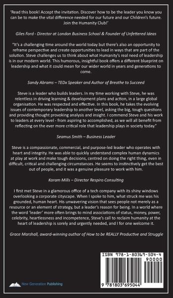 If our experience of the world in which we live comes down to the quality of the leadership leading it, then its time humanity determined what it needed from leaders. Today's workplace is a modern tragedy where; humans go through the motions, increased profit and share value is the only thing that matters and long hours, stress, fatigue and burnout are the norm. Organisations operate in an increasingly global world and yet the gaps between those that 'have' and those that 'have not' is becoming clear for all to see. To what degree is humanity really prospering from the invention of work and if we could re-invent work and leadership - what would it look like? In this enlightening, personal and compelling read, the author lays out some of the stunning leadership short falls across the political and commercial landscape over recent years and proposes in detail what is becoming the growing agenda for progressive workplaces in the 21st Century. The author provides useful and practical approaches for leaders who not only want to create a place of work where their organization does great, but also where it does good and is a place where humans thrive. The author concludes the book with an invite, to you the reader, to become part of the Humanity Club, a club for people who want to not only win and succeed in business, but who also want to leave a legacy where the world of work works for all of humanity. The author is a well-respected global leader in Leadership and Organizational Development (the study of social and behavioural change in organizations) and has been in this field of practice for over 23 years. The author has also successfully led his own consultancy business on two occasions in the past 20 years where his services in leadership, cultural and performance development served Fortune 500 and FTSE 100 clients globally. Humanity Inc has been written for leaders, CEO's, entrepreneurs, CPO's, HR leaders, CLO's, learning practitioners, coaches, educators, consultants and humans who are interested in creating causes that have a positive social impact. 'Read this book! Accept the invitation. Discover how to be the leader you know you can be to make the vital difference needed for our future and our Children's future. Join the Humanity Club!' Giles Ford - Director at London Business School & Founder of Unfettered Ideas "It's a challenging time around the world today but there's also an opportunity to reframe perspective and create opportunities to lead in ways that are part of the solution. Steve challenges us to think about what Humanity's real need of leadership is in our modern world. This humorous, insightful book offers a different blueprint on leadership and what it could mean for our wider world in years and generations to come. Sandy Abrams - TEDx Speaker and Author of Breathe to Succeed Steve is a leader who builds leaders. In my time working with Steve, he was relentless in driving learning & development plans and action, in a large global organisation. He was respected and effective. In this book, he takes the evolving issues of contemporary leadership to another level, asking the big, tough questions and providing thought provoking analysis and insight. I commend Steve and his work to leaders at every level - from aspiring to accomplished, as we will all benefit from reflecting on the ever more critical role that leadership plays in society today." Seamus Smith - Business Leader