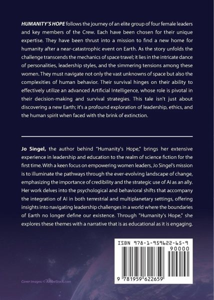 HUMANITY'S HOPE follows the journey of an elite group of four female leaders and key members of the Crew. Each have been chosen for their unique expertise. They have been thrust into a mission to find a new home for humanity after a near-catastrophic event on Earth. As the story unfolds the challenge transcends the mechanics of space travel; it lies in the intricate dance of personalities, leadership styles, and the simmering tensions among these women. They must navigate not only the vast unknowns of space but also the complexities of human behavior. Their survival hinges on their ability to effectively utilize an advanced Artificial Intelligence, whose role is pivotal in their decision-making and survival strategies. This tale isn't just about discovering a new Earth; it's a profound exploration of leadership, ethics, and the human spirit when faced with the brink of extinction.