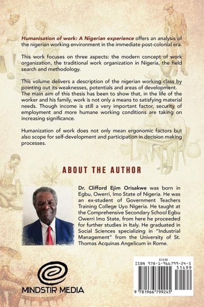 Beyond Wages: Redefining Work and Dignity in Post-Colonial Nigeria In post-colonial Nigeria, work is more than just a means of survival. This book explores the shift towards dignified labor, where self-development, job security, and participation redefine the role of the worker. Humanisation of Work: A Nigerian Experience offers an analysis of the Nigerian working environment in the immediate post-colonial era. This work focuses on three aspects: the modern concept of work organization, the traditional work organization in Nigeria, field research and methodology. This volume delivers a description of the Nigerian working class by pointing out its weaknesses, potentials and areas of development. The main aim of this thesis has been to show that, in the life of the worker and his family, work is not only a means to satisfying material needs. Although income is still a very important factor, security of employment and more humane working conditions are taking on increasing significance. Humanization of work does not only mean ergonomic factors but also provides scope for self-development and participation in decision-making processes.