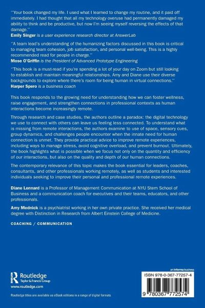 This book responds to the growing need for understanding how we can foster wellness, raise engagement, and strengthen connections in professional contexts as human interactions become increasingly remote.