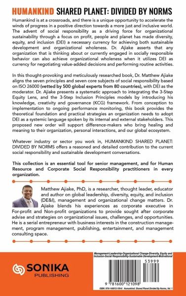 How Can Humanity Ever Learn to Coexist Peacefully on Our Shared Planet?An Insightful Guide to Healing Our Divisive Norms Through Social Responsibility & Sustainability Frameworks You don't need a book to tell you that we are more divided than ever. Humanity is divided not just in one country or another-but across the globe. But what's the cause of all of these divisions, and is there any way to bring humanity together? The primary driving force of humanity's divisions are the norms we employ to live our lives and solve problems. These norms are the systems we have developed, often through accident and happenstance, that allow us to make decisions. The problem is that often these norms are biased and create unnatural divisions. The good news is that there is a way to heal our divisions. The key to solving systemic problems is to create better systems. In Humankind Shared Planet, Dr. Matthew Ajiake explains how to identify the divisive norms disrupting our potential for peace and prosperity and how we can build better systems using social responsibility and sustainability frameworks. Inside this book, you will discover:· What diversity, equity, and inclusion mean and how to apply them· How to establish the knowledge, creativity, and governance model· 7 principles of social responsibility· How to use diversity, equity, and inclusion to improve human rights· The keys to applying diversity, equity, and inclusion in improving labor conditions· How diversity, equity, and inclusion can improve the environment· And Much More! If you're worried about our planet's and humanity's future, this book is a must-read. Dr. Ajiake skillfully explains complex systemic problems and solutions in a clear, easy-to-read way. Once you read this book, you will not only be filled with hope, but you'll also have the knowledge of what it will take to heal humanity's divisions.Don't Wait Another Moment. Get Your Copy of Humankind Shared Planet Right Now!