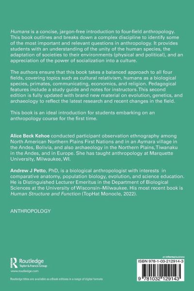 Humans is a concise, jargon-free introduction to four-field anthropology. This book outlines and breaks down a complex discipline to identify some of the most important and relevant questions in anthropology. It provides students with an understanding of the unity of the human species, the adaptation of societies to their environments (physical and political), and an appreciation of the power of socialization into a culture.