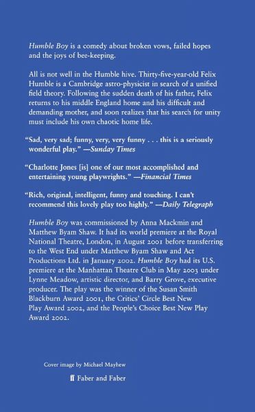 An award-winning new play that has been called "a brilliant latter-day variant on Elsinore in an English country garden blitzed by bees" (Sheridan Morley, The Spectator) All is not well in the Humble hive. Thirty-five-year-old Felix Humble is a Cambridge astrophysicist in search of a unified field theory, but after the sudden death of his father, James, a teacher and amateur beekeeper, he is forced to return to the family home in the English countryside. Once there he and his demanding mother, Flora, a glamorous former showgirl who resents having spent the last thirty years in suburban exile, attempt to reconcile themselves to James's death and to each other, plumbing the depths of their anger as well as their love. The emotional turmoil increases exponentially with the arrival of George, Flora's longtime lover, and his daughter Rosie, Felix's former girlfriend, as Felix is forced to acknowledge that his search for unity must include his own chaotic home life. A play concerned with beekeeping and astrophysics, imbued with heartbreak and wit, larger questions of the universe and smaller questions of family dynamics, Humble Boy has been called "a feast: a serious, moving, cerebral feast" (The Sunday Times).