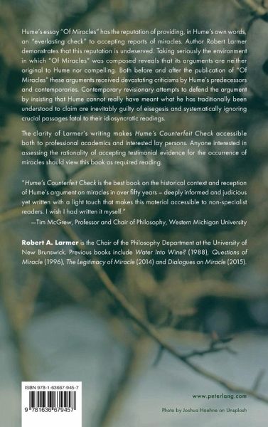 "In Hume's Counterfeit Check, Robert Larmer carefully reconstructs Hume's argument against belief in miracles, and forcefully criticizes that argument. The historical scholarship is thorough; its criticisms are sharp. This book is essential reading for any serious scholar of the time, indeed for anyone interested in the relevance of Hume's criticism." -Nathan Rockwood, Associate Professor, Department of Philosophy, Brigham Young University