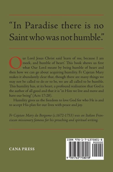 Our Lord Jesus Christ said 'learn of me, because I am meek, and humble of heart'. This book shows us first what Our Lord meant by being humble of heart and then how we can go about acquiring humility. Fr Cajetan Mary makes it abundantly clear that, though there are many things we may not be called to do or to be, we are all called to be humble. This humility has, at its heart, a profound realisation that God is the author of all good and that it is "in Him we live and move and have our being" (Acts 17:28). Humility gives us the freedom to love God for who He is and to accept His plan for our lives with peace and joy.