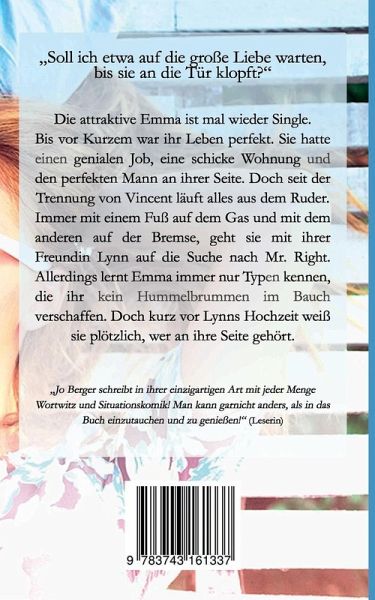 "Soll ich auf die große Liebe warten? Auf Mr. Right, der mein Herz erobert? Genau das ist das Problem. Der kommt nicht einfach und klopft an die Tür, den richtigen Mann muss man zunächst einmal erkennen. Und wie zur Hölle geht das? Vielleicht durch Ausprobieren? Jeans probiert man ja auch an, bevor man sein Leben mit ihnen teilt."Die attraktive Emma ist mal wieder Single. Bis vor Kurzem war ihr Leben perfekt. Sie hatte einen genialen Job, eine schicke Wohnung und den perfekten Mann an ihrer Seite. Doch seit der Trennung von Vincent läuft alles aus dem Ruder.Immer mit einem Fuß auf dem Gas und mit dem anderen auf der Bremse, geht sie mit ihrer Freundin Lynn auf die Suche nach Mr. Right. Allerdings lernt Emma immer nur Typen kennen, die ihr kein Hummelbrummen im Bauch verschaffen. Doch kurz vor Lynns Hochzeit weiß sie plötzlich, wer an ihre Seite gehört.Der Roman ist in sich abgeschlossen und enthält keinen Cliffhanger.Neuauflage. Zuletzt erschienen in 2015 unter dem Titel "Bedingtwetterfest".