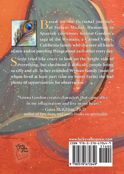Based on the fictional journals of Stefani Michel, Humming in Spanish is the third volume in Ginna's Lavandula Series. This multi-generational saga begins in the 1960s and is set in the fictional Sweet Farm, a Carmel Valley, California lavender farm of some local renown. The farm is the home of an intertwining cast of characters all somehow related to the Wyman clan: farmers, artists, writers, musicians. Over six decades, they bond and clash in unusual ways as they create their lives one breath at a time and discover all kinds of new and/or puzzling things about each other every day.