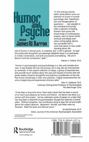 Barron Introduction. Part I: Historical and Philosophical Perspectives. Bergmann The Psychoanalytic Struggle to Solve the Mystery of Humor: A Historical Survey. Sanville Humor and Play. Barrett Cracks: On Castration Death and Laughter. Grotstein Humor and Its Relation to the Unconscious. Part II: Therapeutic Process.Baker The Delicate Balance Between the Use and Abuse of Humor in the Psychoanalytic Setting. Giovacchini Humor the Transitional Space and the Therapeutic Process. Meissner Humor Is a Funny Thing: Dimensions of the Therapeutic Relationship. Part III: Character and Creativity.Dupont Humor in the Freud-Ferenczi Correspondence. Rodman Winnicott's Laughter. Feder This Scherzo Is [Not] a Joke. Barron Conclusion.