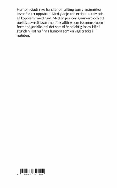 Humor i Guds rike handlar om allting som vi människor lever för att upptäcka. Med glädje och ett berikat liv och så kopplar vi med Gud. Med en personlig närvaro och ett positivt synsätt, sammanförs allting som i gemenskapen formar ögonblicket i det som vi är delaktig inom. Här i stunden just nu finns humorn som en vägsträcka i nutiden.